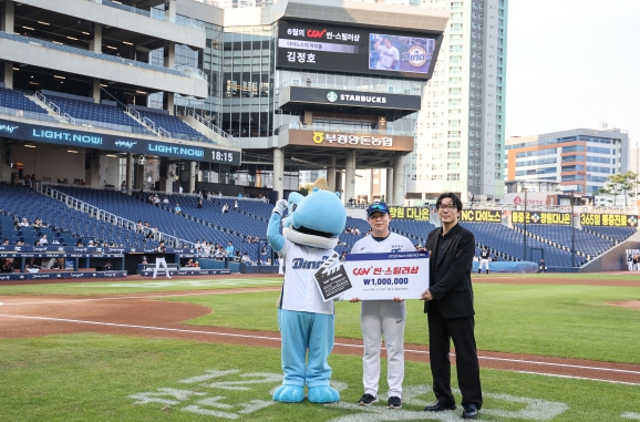 ‘6월 CGV 씬-스틸러상’ 수상자는 7월 1일(화)부터 4일(금)까지 총 4일간 진행된 팬 투표(100%)를 통해 선정됐다. 총 투표수 5,457표 중 NC 김정호가 2,549표(46.7%)를 얻으며 2위 KBO 박기택 심판위원(998표-18.3%), 3위 키움 조영건(968표-17.7%), 4위 삼성 디아즈(942표-17.3%)를 제치고 수상하게 됐다.