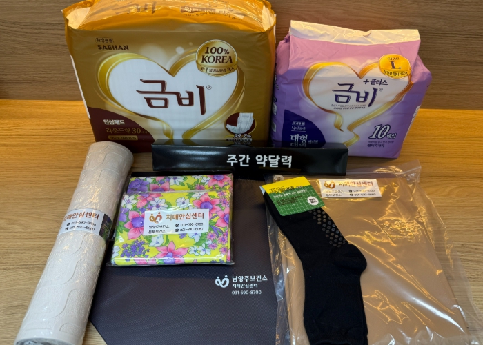 위생소모품은 센터 신규 등록자에게 최초 1회 제공된다. 등록 시 제공되는 물품은 △약달력 △식사용 에이프런 △방수시트 △미끄럼방지매트 △미끄럼방지양말 등 어르신들에게 필요한 5종으로 구성된다.
