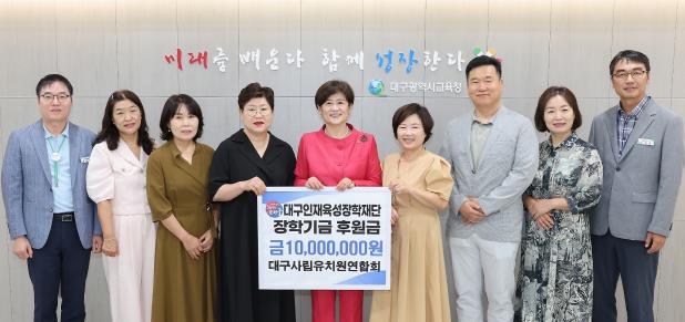 강은희 교육감은 “장학금을 기탁해 주신 사립유치원 원장님들께 감사의 마음을 전한다.”며, “기탁금은 지역인재육성을 위해 꼭 필요한 곳에 소중하게 쓰일 것이다.” 라고 전했다.