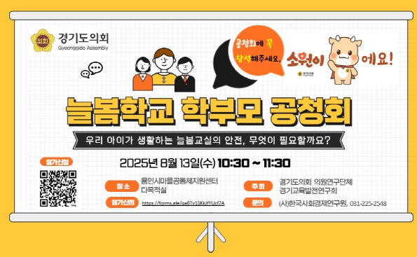 공청회는 기흥구 소재 초등학교 학부모를 중심으로 진행되며, 아래 링크 또는 QR코드를 통해 사전 신청이 가능하다.