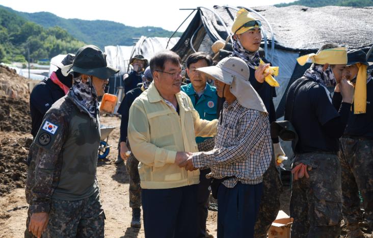 특히 폭염 속에서도 복구 작업에 매진하고 있는 젊은 장병들에게 시원한 음료를 건네며 노고를 격려했다.
