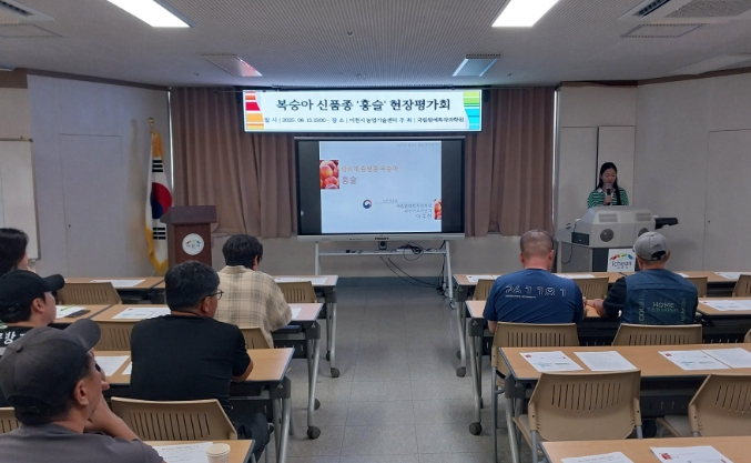 이번 평가회는 농촌진흥청 국립원예특작과학원 과수기초기반과에서 주최했으며,‘흥슬’폼종의 생육 특성, 재배 적응성 및 상품성 등을 현장에서 직접 확인하고, 농업인 및 관계자들의 다양한 의견을 수렴하고자 마련됐다.