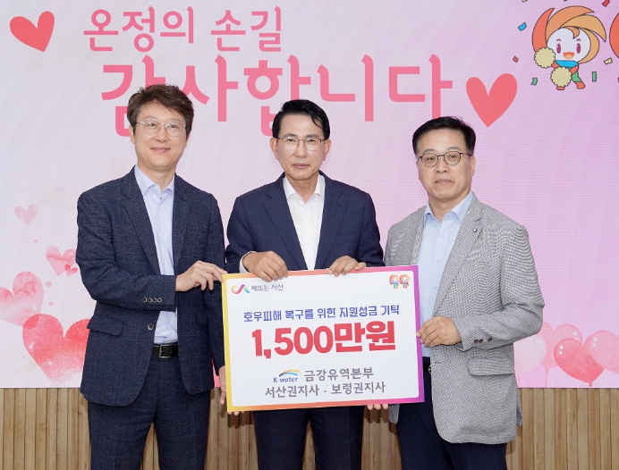 이완섭 서산시장은 “지역 주민의 아픔에 공감하며 따뜻한 손길을 보내주신 K-water에 깊은 감사를 드린다”라며 “기탁해 주신 성금은 꼭 필요한 분들께 신속히 전달하겠다”라고 말했다.