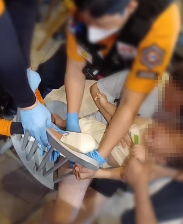 사고는 폭 약 10cm의 나무 의자 등받이에 아이의 다리가 약 20분간 끼이면서 발생했다. 보호자가 여러 차례 빼내려 시도했으나 실패해 119에 신고했고, 이를 접수한 해미119안전센터 대원들이 현장에 신속히 출동했다.