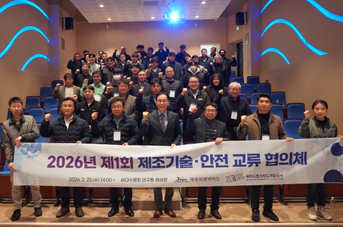 제주개발공사는 25일 조천읍 교래리 제주삼다수공장에서 도내 제조업체 실무자들이 참석한 가운데 ‘2026년도 제1회 제주 제조업 기술·안전 교류 협의체’를 개최했다.
