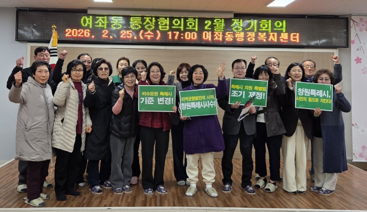 이날 통장협의회 회원들은 회의 후 ‘창원특례시 지위 사수’, ‘특례시 권한 확보’ 등의 문구가 적힌 피켓을 들고 구호를 외치며 캠페인을 전개했으며, 지역 발전을 위한 뜻을 모았다.