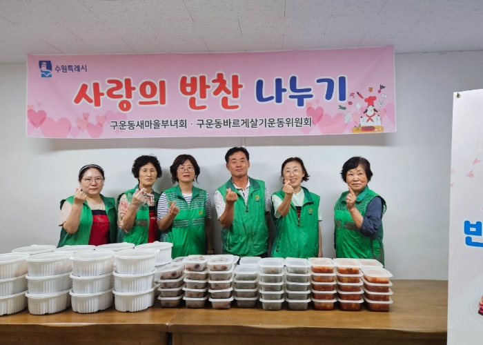 정현미 새마을부녀회장은 “열심히 준비한 반찬들 드시면서 무더운 여름 날씨로 떨어진 입맛을 돋우고 식사를 챙기기 어려운 관내 어르신들의 건강도 잘 챙기셨으면 좋겠다”라며 “앞으로도 회원들과 함께 따뜻한 나눔을 이어가며, 이웃과 함께하는 구운동 지역공동체를 만들어 나가겠다”라고 밝혔다.