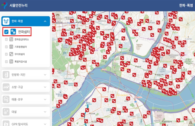 올겨울 한파쉼터는 약 1,504곳을 운영 중이다. 한파 특보 발효시에는 자치구 협조를 통해 개방‧운영 여부 등에 대한 전수점검을 실시해 내실 있게 운영할 계획이다.