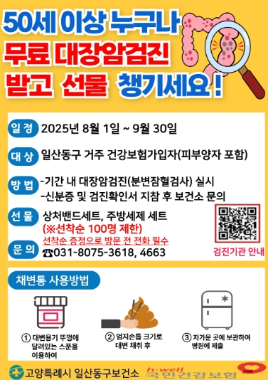 이번 이벤트는 일산동구 관내 2025년 국가암대장암 검진 대상자 중 건강보험가입자가 대상이다.