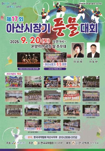 대회에는 지난해 대상팀인 온양3동 나래울풍물단을 비롯해 아산시 관내 16개 풍물단과 총 300여 명의 국악인이 참여해 다양한 풍물 경연을 펼친다.