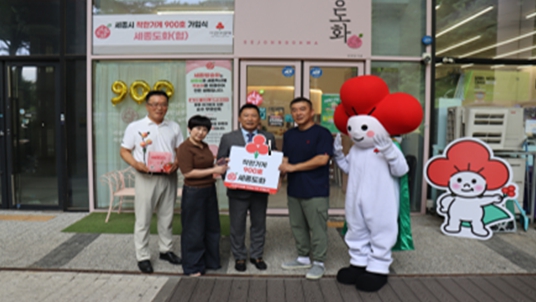 세종사회복지공동모금회(회장 박상혁)는 7일 11시 세종특별자치시 어진동 세종도화에서 김일호 세종도화협동조합 이사장, 이혜신 이사, 박상혁 세종모금회장, 안재승 세종 사랑의열매 나눔봉사단 감사 등이 참석한 가운데 ‘세종도화 착한가게 900호 가입식’을 가졌다.