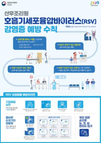 호흡기세포융합바이러스(RSV) 예방을 위해서는 ▲기침예절 실천 ▲흐르는 물에 30초 이상 올바른 손씻기 ▲씻지 않은 손으로 눈, 코, 입 만지지 않기 ▲실내에서 자주 환기하기 ▲발열, 호흡기 증상 시 의료기관 방문하여 적절한 진료 받기 ▲장난감, 식기 등 많이 만지는 물건 자주 소독하기 등을 생활속 실천이 중요하다.