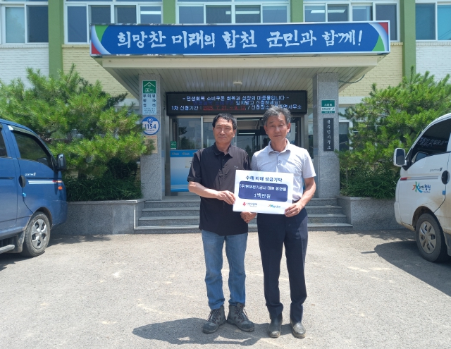 윤한필 대표는 기록적 폭우로 주거지를 잃은 용주면 고향 주민들의 조속한 일상 회복을 돕기 위해 영업 중에도 급히 시간을 내 방문했다고 전하며, “많지 않은 금액이지만 도움이 되길 바란다”고 말하며 성금을 건넸다.