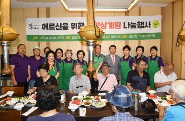 이날 행사는 교문1동 새마을단체 회원들이 무더위에 지친 어르신들의 건강한 여름나기를 기원하며 마련한 행사로, 교문1동에 거주하는 어르신 80여 명이 참여했다. 특히 이번 행사는 교문1동 새마을단체가 유채꽃 축제와 매실 수확 활동 등을 통해 마련한 수익금으로 마련한 것이어서 더욱 큰 의미가 있었다.