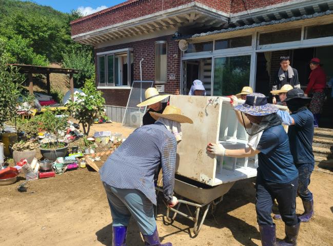 정봉훈 의장을 비롯한 군의원과 사무직원은 가재도구 정리, 토사 제거, 폐기물 처리 등 신속한 복구작업을 위해 구슬땀을 흘렸다.