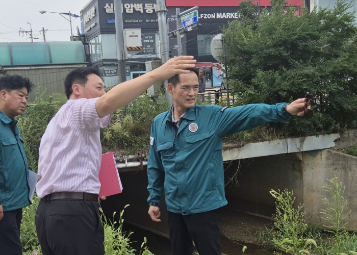 신영호 구청장과 공무원들은 이날 지방하천인 장월평천과 가좌천 2개소에 방문해 하천시설물 등 취약시설물을 중점 점검했다. 이후 소하천 3개소 한산천, 대화천, 한류천에서 하천 준설상태, 범람 위험 위치 등을 확인했다.