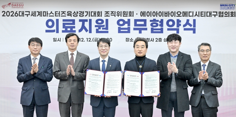 이날 협약식에는 김정기 대구광역시장 권한대행 행정부시장 겸 조직위원장, 민복기 AI 바이오·메디시티대구협의회장, 진기훈 조직위 사무총장 등이 참석해, 대회의 안전한 경기 환경 조성과 신속한 의료 대응 체계 구축을 위해 상호 협력하기로 뜻을 모았다.