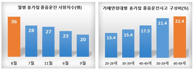 이 중 8월에 발생한 사망자는 36명(14.3%)으로 연중 제일 많은 것으로 나타났다.