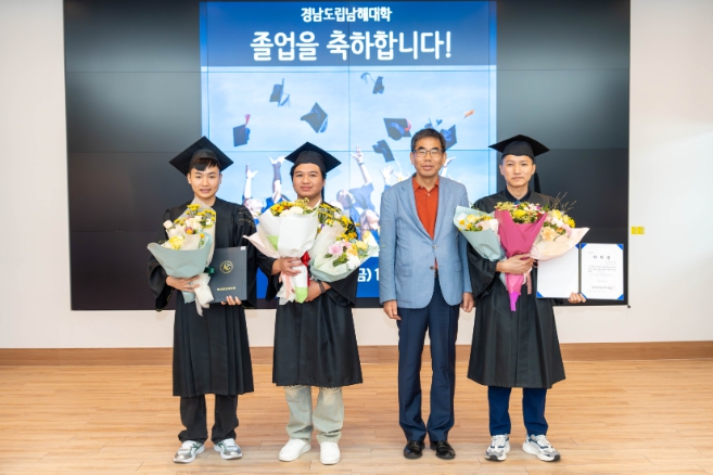 이날 졸업식은 남해대학에서 유학생이 조기 졸업하는 첫 사례로, 전기·자동차계열 24학번인 응웬 민 히우, 응웬 반 남, 킴 응옥 안 등 베트남 출신 학생 3명이 졸업장을 받았다. 이들은 2024년 3월 입학 이후 3학기 만에 졸업 요건을 모두 이수해 조기 졸업 자격을 갖췄다.