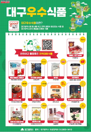 또한 ‘대구우수식품’의 경쟁력 강화와 판로 개척을 위해 △대형유통업체 특별판매전 운영 △대형마트 및 단체급식 시장 신규 진출 지원 △국내 대표 식품박람회 참가 지원 △수출 지원 정책 연계 등 실질적인 매출 증대로 이어질 수 있도록 체계적인 지원을 추진하고 있다.