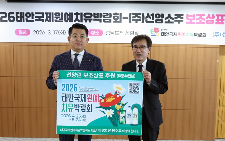 전형식 정무부지사는 “지역 기업과 함께하는 홍보 협력은 태안국제원예치유박람회 성공 개최를 위한 중요한 기반”이라고 강조하며 “선양소주와 같은 지역 기업의 적극적인 참여로 박람회 홍보 범위가 더욱 넓어질 것으로 기대한다”고 말했다.
