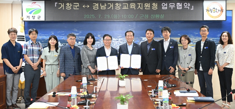 협약식에는 구인모 거창군수, 신종규 거창교육지원청 교육장을 비롯해 양 기관 관계자 10여 명이 참석해 자리를 빛냈다.