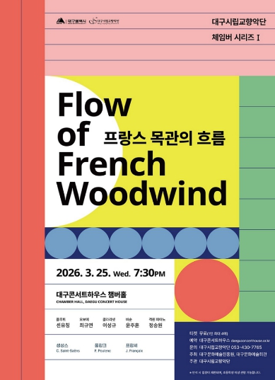 이번 공연에서는 생상스, 풀랑크, 프랑세까지 프랑스 작곡가들의 실내악 작품을 통해 목관과 피아노가 선보이는 다채로운 색채와 섬세한 음향을 가까이에서 느낄 수 있다. 출연진은 셴유칭(플루트), 최규연(오보에), 이성규(클라리넷), 윤주훈(바순)과 객원 피아니스트 정승원이다. 2025년 새롭게 합류한 대구시향 목관 단원들이 중심이 되어 젊고 신선한 에너지와 유려한 호흡으로 프랑스 음악의 생동감을 한층 더한다.