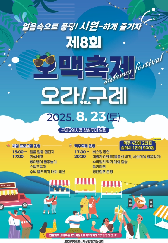 오맥축제는 구례읍 중심시가지형 도시재생사업의 일환으로, 여름철 전통시장의 방문객 감소와 매출 저하 문제를 해결하고, 침체된 구도심에 활력을 불어넣기 위해 2023년 처음 시작돼 이번이 8회째이다.