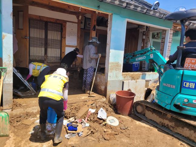 이번 현장 지원에는 시청 공무원 40여 명이 참여했으며, 신속한 복구가 필요한 산청읍에 투입되어 토사 제거, 침수 가구 및 집기 세척, 폐기물 수거 등 복구 작업에 힘을 보태며 주민들의 조속한 일상 회복을 돕기 위해 적극적으로 지원했다.