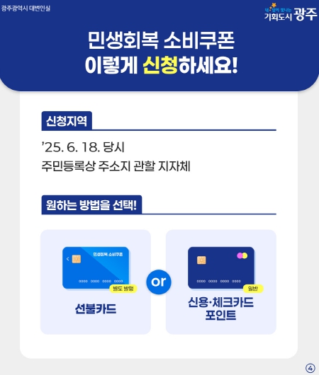 광주시는 앞으로도 민생회복 소비쿠폰 지급 상황을 지속 모니터링하고 시민 불편이 없도록 철저히 관리해 나갈 계획이다.