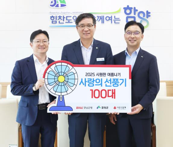 이에 진병영 군수는 “매번 어려운 이웃들을 위해 성품을 기부해 주시는 경남은행에 감사드린다.”라며 “선풍기가 필요한 분들에게 잘 전달될 수 있도록 최선을 다하겠다.”라고 밝혔다.