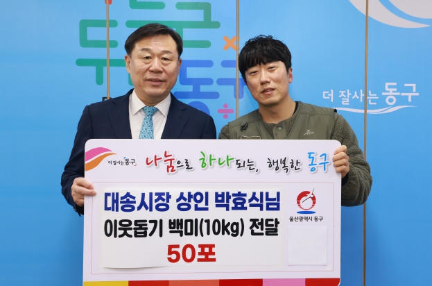 박효식 대표는 평소 시장을 찾아주는 지역 주민들에게 감사의 마음을 전하고, 어려운 이웃을 돕는 데 동참하기 위해 쌀 50포를 기탁했다.