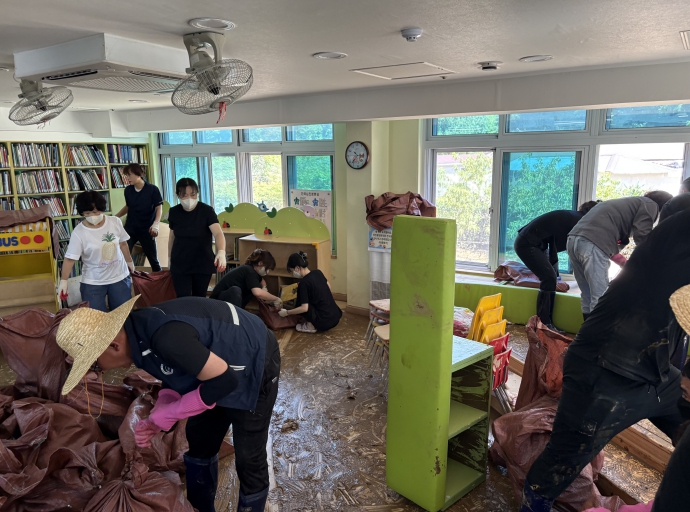 특히, 같은 부지 내에 위치한 용연유치원과 유아체험교육센터는 운동장은 물론 교사동 내부까지 빗물이 유입돼 교구와 기자재가 다수 훼손됐고, 인근 산에서 유입된 토사로 인해 일부 시설이 파손되는 등 학사 운영이 불가능한 수준의 피해를 입었다.