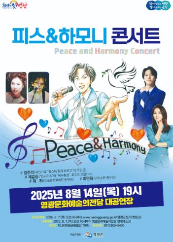 감미로운 음색과 깊은 감성으로 오랜 세월 사랑받아온 임주리, 파워풀한 가창력과 에너지 넘치는 무대로 관객을 압도하는 제갈승, 감성적인 창법과 세련된 음악 스타일로 젊은 세대에게도 큰 인기를 얻고 있는 재하, 전통과 현대를 넘나드는 폭넓은 레퍼토리와 함께 따뜻하고 희망찬 목소리 최연화까지, 조화로운 무대로 음악이 전하는 진정한 평화와 사랑의 가치를 함께 나눌 수 있는 소중한 시간이 될 것이다.