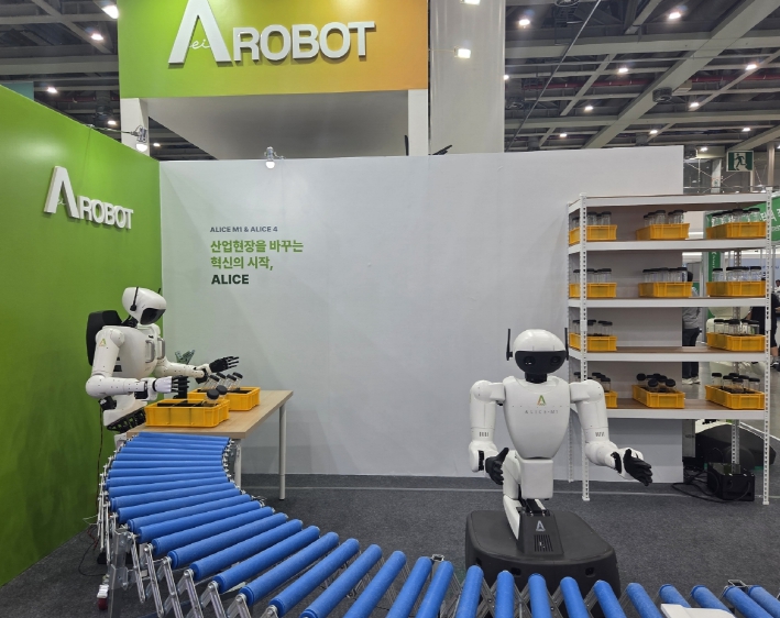 특히, K-휴머노이드 대표주자인 에이로봇의 ‘앨리스MI’ 모델은 휴머노이드와 로봇의 협동 작업을 통해 컨베이어 벨트에 물건을 올리고 이동하는 시연을 국내 최초로 펼치며, 머지않아 미래 제조 현장에 적용 가능한 휴머노이드 기술을 선보였다.