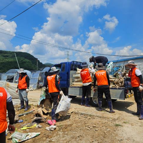 이들은 침수 주택 내부를 정리하고 토사제거 및 생활폐기물 수거 등의 현장 복구 작업에 구슬땀을 흘렸다.