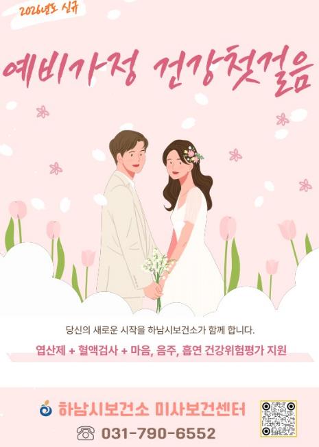 참여를 희망하는 부부는 신분증과 결혼 증빙서류(주민등록등본 또는 청첩장 등)를 지참해 평일 오전 9시부터 11시, 오후 1시부터 4시 사이 미사보건센터 2층 모자보건팀을 방문하면 된다. 단, 엽산제 수령만 원하는 경우 감일건강생활지원센터와 위례보건센터에서도 가능하다.