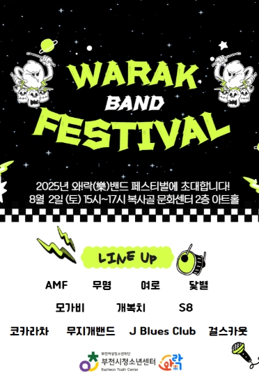 와!락(樂) 페스티벌은 청소년들에게 무대 경험를 제공하고 시민과 함께 문화예술을 향유할 수 있도록 테마별로 기획된 축제이다. 이번 밴드 페스티벌은 청소년․청년 밴드의 음악에 대한 열정과 실력을 펼칠 수 있는 무대로 마련됐다.