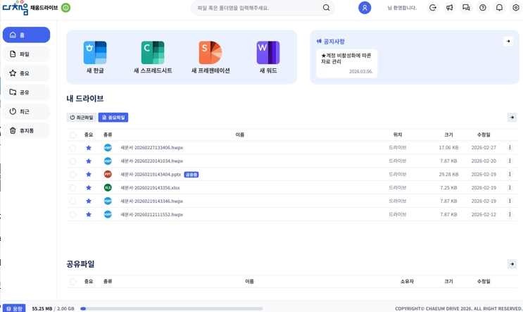 또한 파일과 폴더를 체계적으로 관리하고 공유 권한을 설정할 수 있으며, 문서 변경 이력 관리와 자동 저장 기능을 통해 자료를 안정적으로 관리할 수 있다. 문서 기반 채팅 기능도 함께 제공해 공동 편집 과정에서 의견을 나누는 등 협업 활동의 편의성을 높였다.