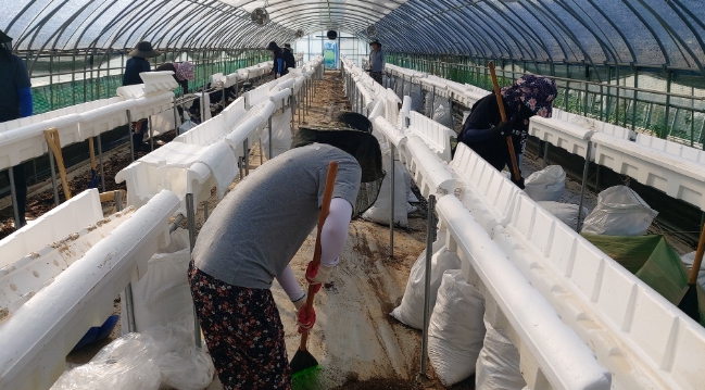 기술보급과 직원 20여명이 참여하여 진흙 제거, 육묘 베드 청소 등 침수피해 딸기하우스 복구에 구슬땀을 흘렸다.