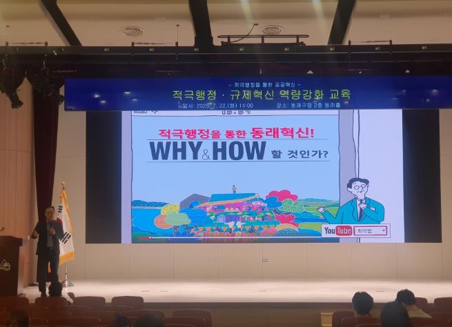 장준용 동래구청장은“빠르게 변하는 사회·경제적 환경 속에서 구민들의 요구도 점차 다양해지고 있는 만큼, 공무원들의 적극행정과 규제혁신이 곧 구민의 행복을 위한 시작점이다”라며“오늘 교육을 통해 적극적이고, 능동적인 자세로 구민의 입장에서 필요한 행정서비스 제공을 위해 노력 해주길 바란다”고 말했다.