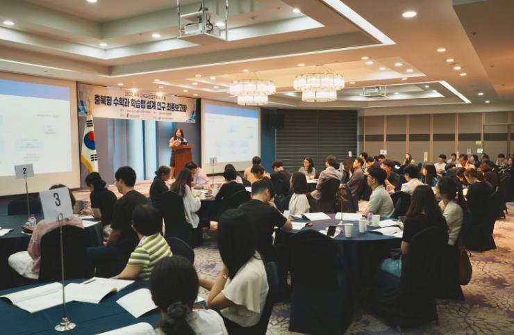 이번 보고회에서는 연구진, 교육청 관계자, 현장 교원 등 100여 명이 참석하여 '충북형 수학과 학습맵' 설계의 연구 결과를 공유하고, 학습맵을 활용한 학생 개별 맞춤형 수학교육 지원 방안을 모색하는 시간을 가졌다.