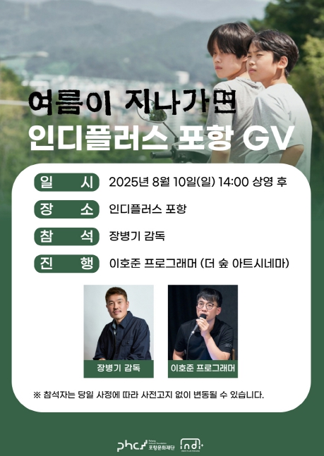 인디플러스 포항 관계자는 “지역 관객들이 독립영화를 보다 깊이 이해하고 교감할 수 있는 자리를 정기적으로 마련하고 있다”며 “이번 상영과 GV 또한 긴 여운을 남길 소중한 시간이 될 것”이라고 말했다.
