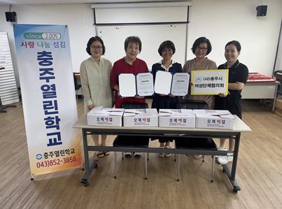 업무협약 체결과 함께, 협의회는 곧 있을 2025년 제2회 초·중·고졸 검정고시를 준비 중인 충주열린학교 학습자들을 위해 떡을 나누며 응원의 메시지를 전하는 따뜻한 격려 시간도 가졌다.