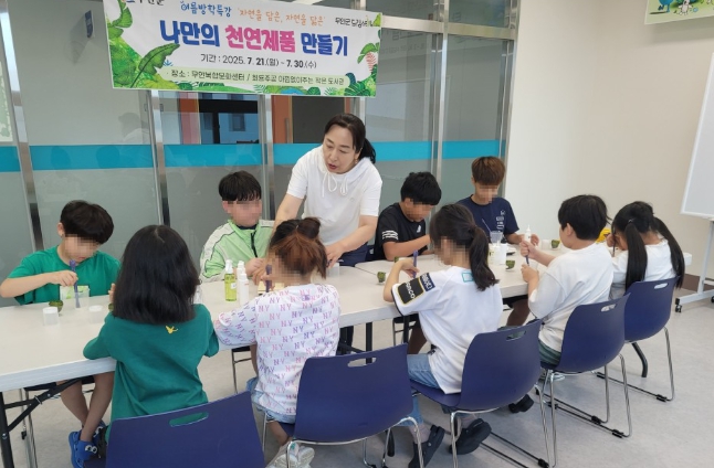 프로그램은 자연에서 온 재료로 세상 하나뿐인 천연제품을 만들어보며 오감과 정서 발달을 돕고 자연의 중요성을 인식하며 취약계층 아동의 건강한 여름철 생활습관을 형성하도록 진행됐다.