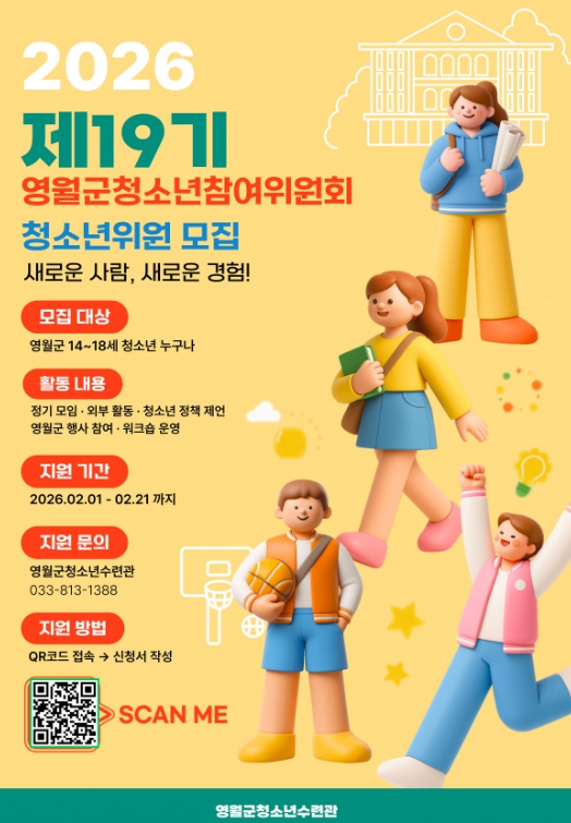 모집 분야는 제19기 영월군청소년참여위원회와 제15기 청소년운영위원회 2개의 청소년참여기구다.
