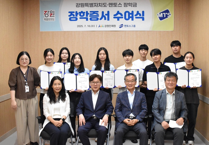 한편, 도·맨토스 장학금은 2023년부터 강원특별자치도와 맨토스그룹이 매년 각 500만 원씩 기금을 조성하여 운영하고 있으며, 현재까지 총 30명의 강원지역 청년 인재들이 이 장학금을 통해 학업과 진로에 한 발 더 다가설 수 있었다.