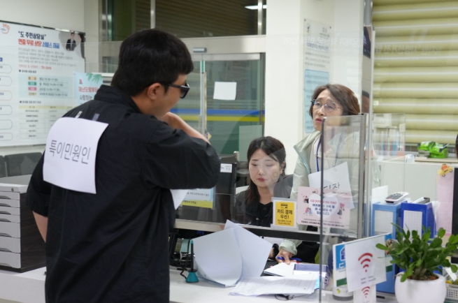훈련은 여권 발급 시 민생회복 소비쿠폰 사용 불가에 불만을 표출하는 민원인 사례를 가정해 △팀장 적극 개입 △폭언 녹음 △비상벨 작동 △피해공무원 분리 △민원인 대피 등 단계별 대응 절차를 점검했다.