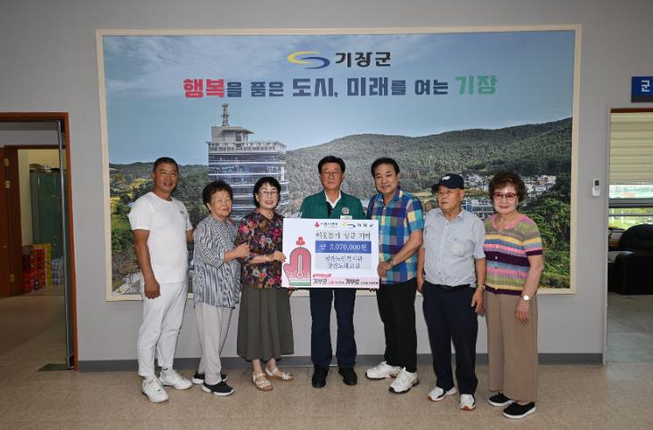 이에 정종복 기장군수는 “기장군 취약계층 지원을 위한 따뜻한 나눔에 감사드린다”라며 “기탁해주신 성금은 도움이 필요한 분들께 소중히 전달하겠다”라고 말했다.