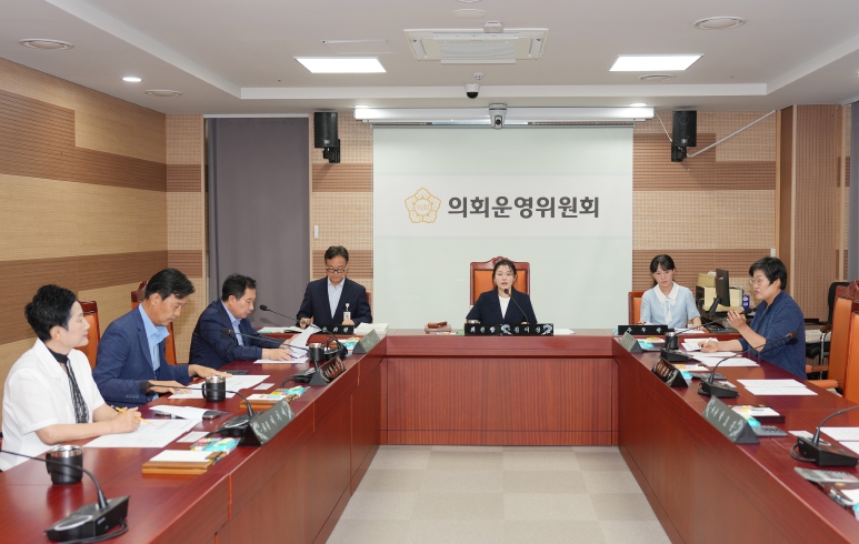 임시회 의사일정 협의, 제261회 원포인트 임시회 8월 14일 개회아산시의회, 제3차 의회운영위원회를 개회[시티트리뷴] 아산시의회 의회운영위원회(위원장 김미성)가 제260회 임시회 폐회중, 5일 오전 10시 5층 의회운영위원회 회의실에서 제3차 의회운영위원회를 개회했다.